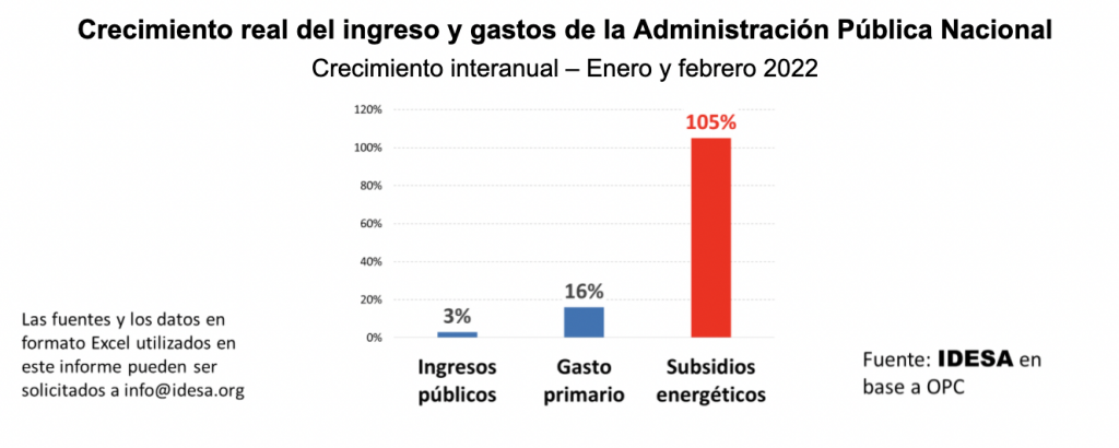 La pregunta que cabe hacerse es cuál es la situación de los subsidios económicos. Según la Oficina de Presupuesto del Congreso (OPC), las cuentas de la Administración Publica Nacional en enero-febrero 2022 muestran las siguientes tendencias:
