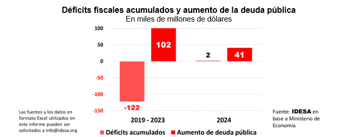 - Entre los años 2019 y 2023, los déficits del tesoro nacional acumulados ascendieron a 122 mil millones de dólares.