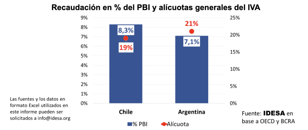 - Esto implica que, con la alícuota que Argentina tiene, podría recaudar 9% del PBI si lograra la eficiencia en la recaudación que tiene Chile.