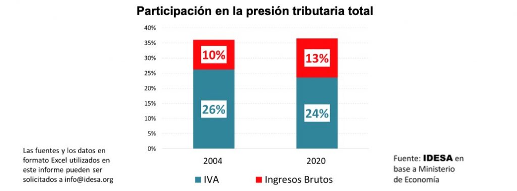 - El IVA en el 2004 representaba el 26% de la recaudación total y bajó al 24% en el 2020.