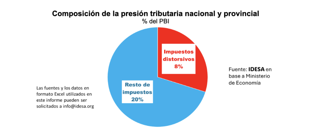 - A través de los cuatro impuestos que más erosionan la competitividad (derechos de exportación, PAIS, Cheque e Ingresos Brutos) se recauda el 8% del PBI.
