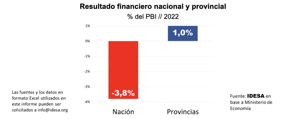La pregunta que cabe hacerse es si con eliminar el déficit fiscal es suficiente. En este sentido, sirve analizar los diferentes comportamientos fiscales que vienen mostrando el Estado nacional y las provincias. Según información publicada por el Ministerio de Economía para el 2022 se observa que:
