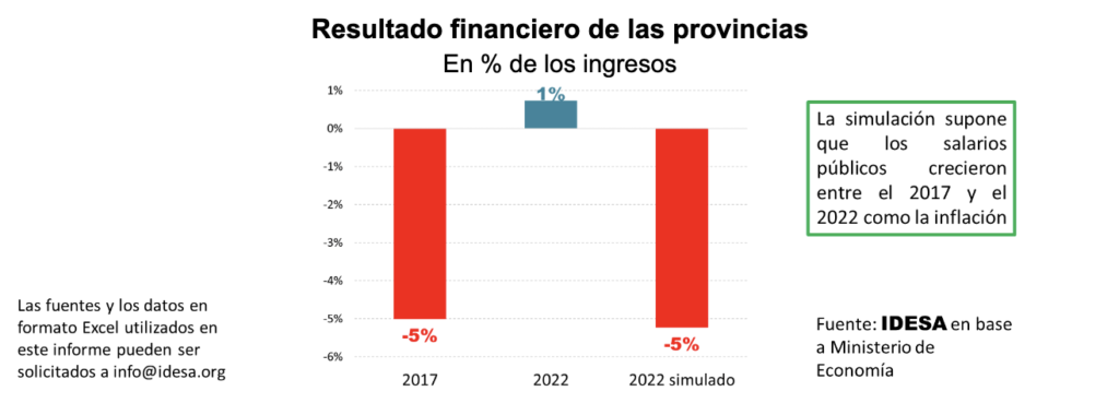 - Si desde el 2017 los salarios de los empleados provinciales se hubiesen ajustado como la inflación el resultado habría sido un déficit de -5 % de sus ingresos.